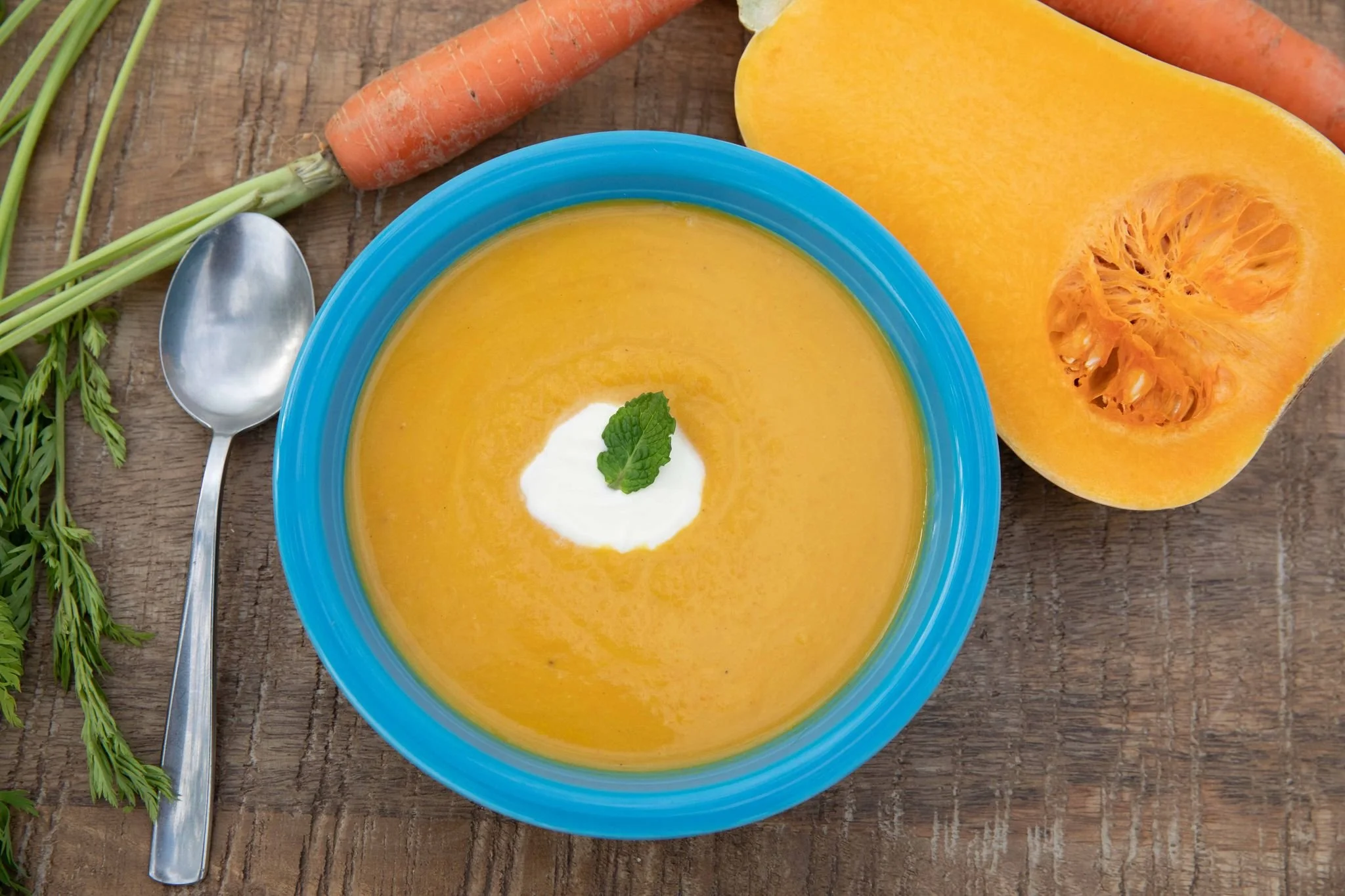 A velvety, flavorful blend of butternut squash and carrots with coconut cream, brown sugar and spices.